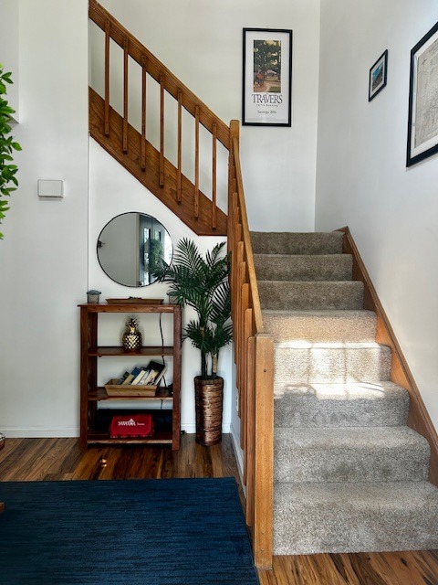 Booked for the 2026 Track Season 2 Bedroom with 2.5 baths. Cute as a button townhome only a few minutes drive to town. Elegantly decorated on two levels with hardwood floors, generous bedrooms, cozy living room and bright & sunny kitchen and dining area. From the dining room, sliding doors open onto the deck with a grill., oversized armchairs for relaxing with your friends & family and a separate outdoor dining set. The large back yard walks you along a path through the gardens to a quiet area in the trees with a fire pit surrounded by lounge chairs. Home owner will consider pets.