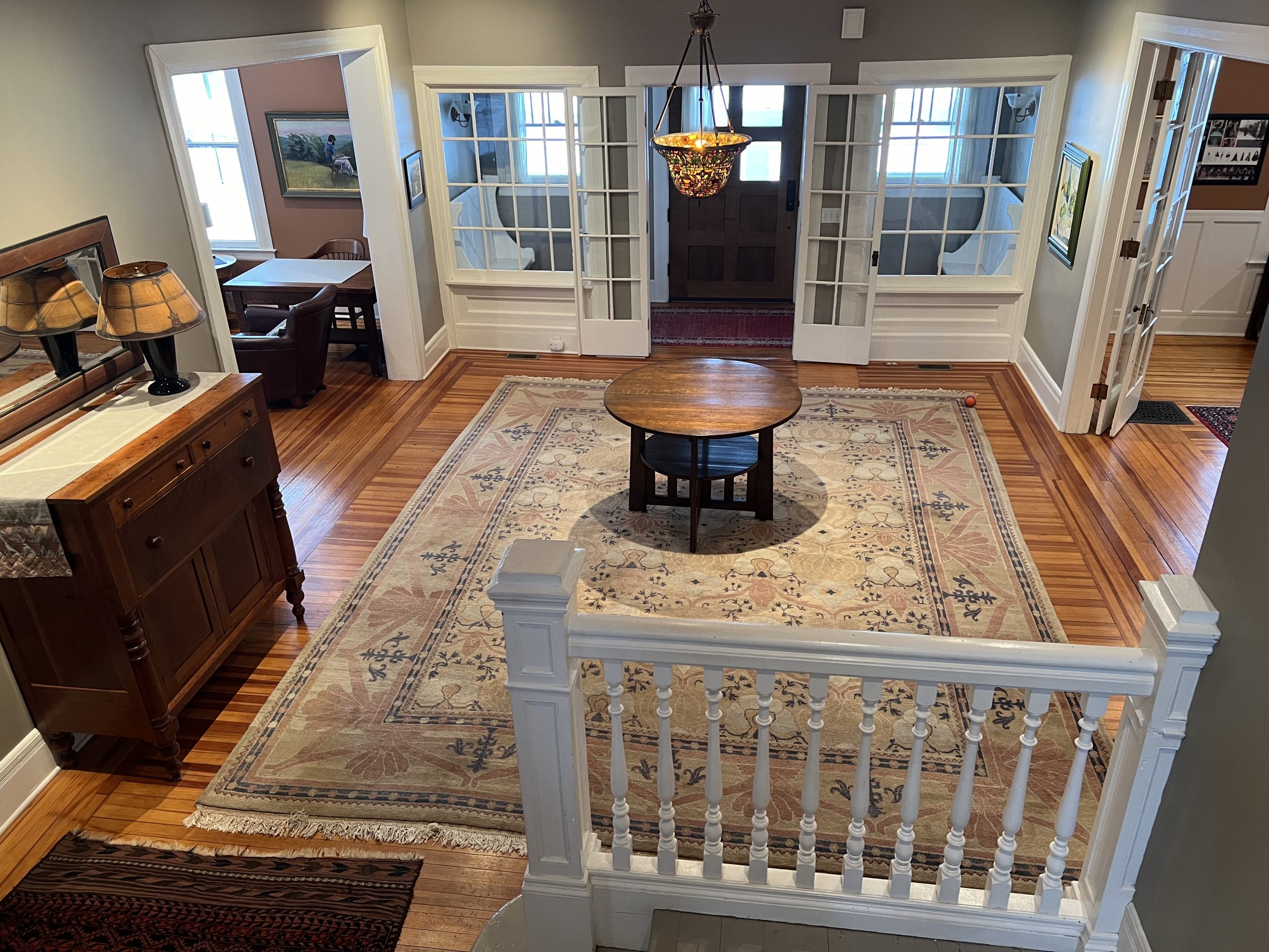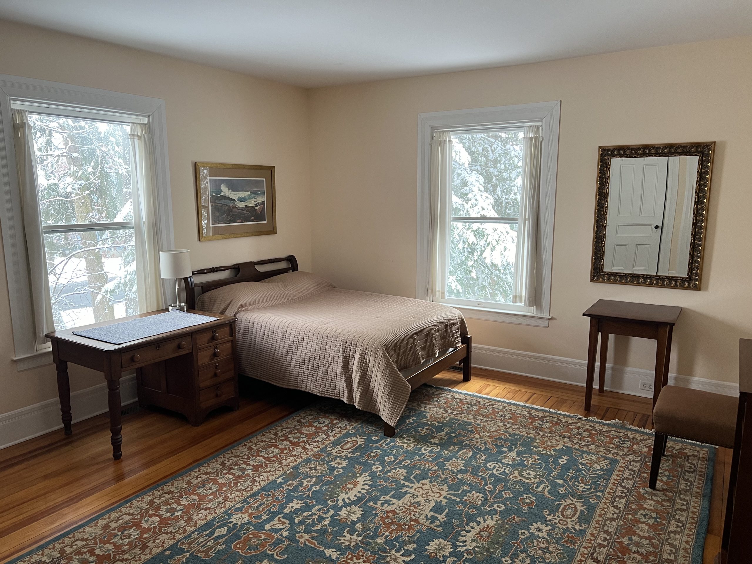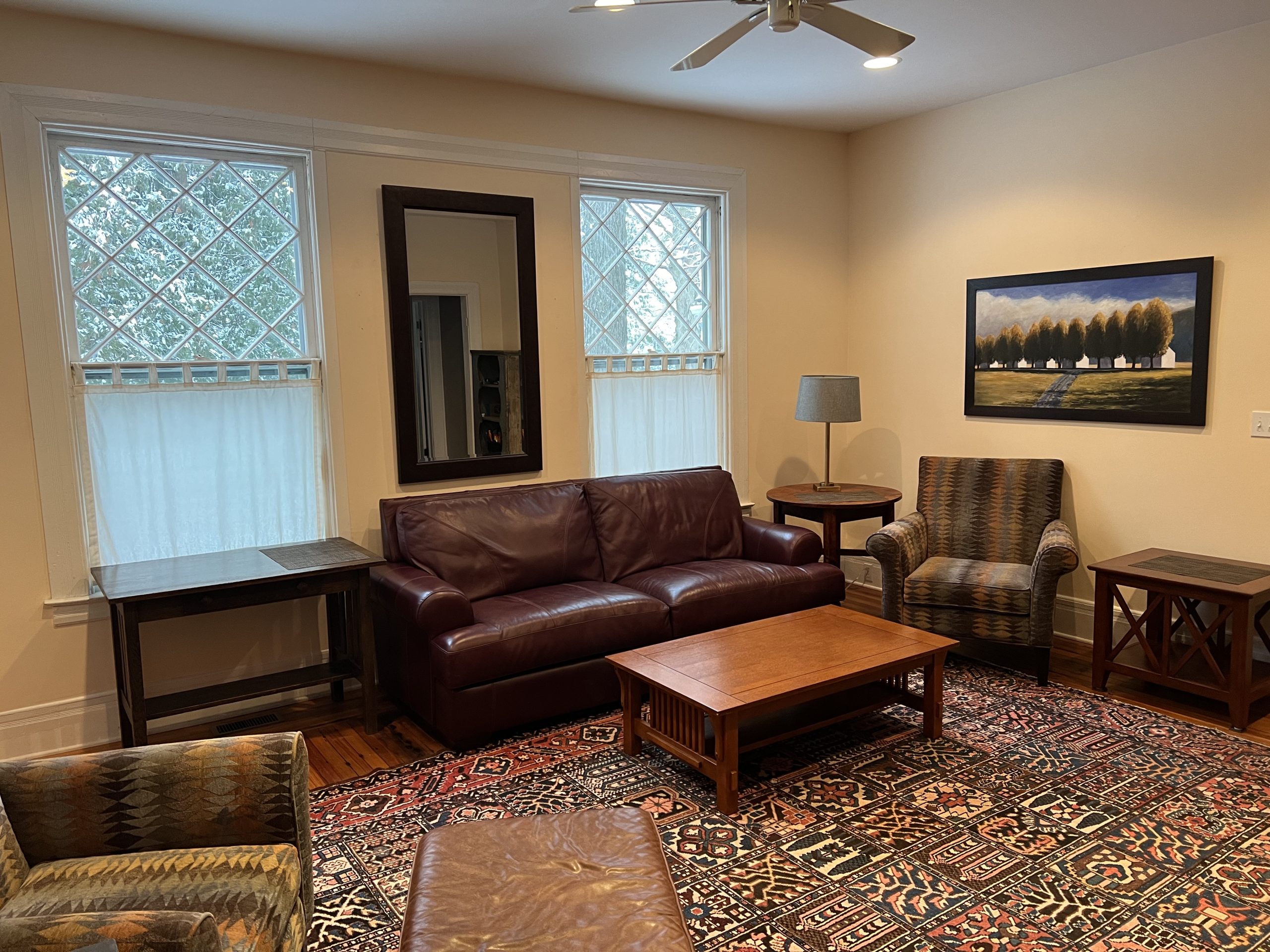Available for the 2026 Track Season Welcome to Elmwood Mansion – Circa 1905 – This fully-renovated architectural gem boasts 5 bedrooms and 4 full baths with gorgeous open floor plan located less than a block from the Fasig Tipton Sales Pavilion and easy walking distance to the track .The spacious “Saratoga” front porch is great for entertaining or relaxing after at day at the track! . There is also a third level living space that boasts 3 bedrooms, living room and 1 full bath that can be combined with this rental. The Carriage House is a separate rental unit on the property that will be occupied. Can be rented for the season or multi-weekly – please call for options!