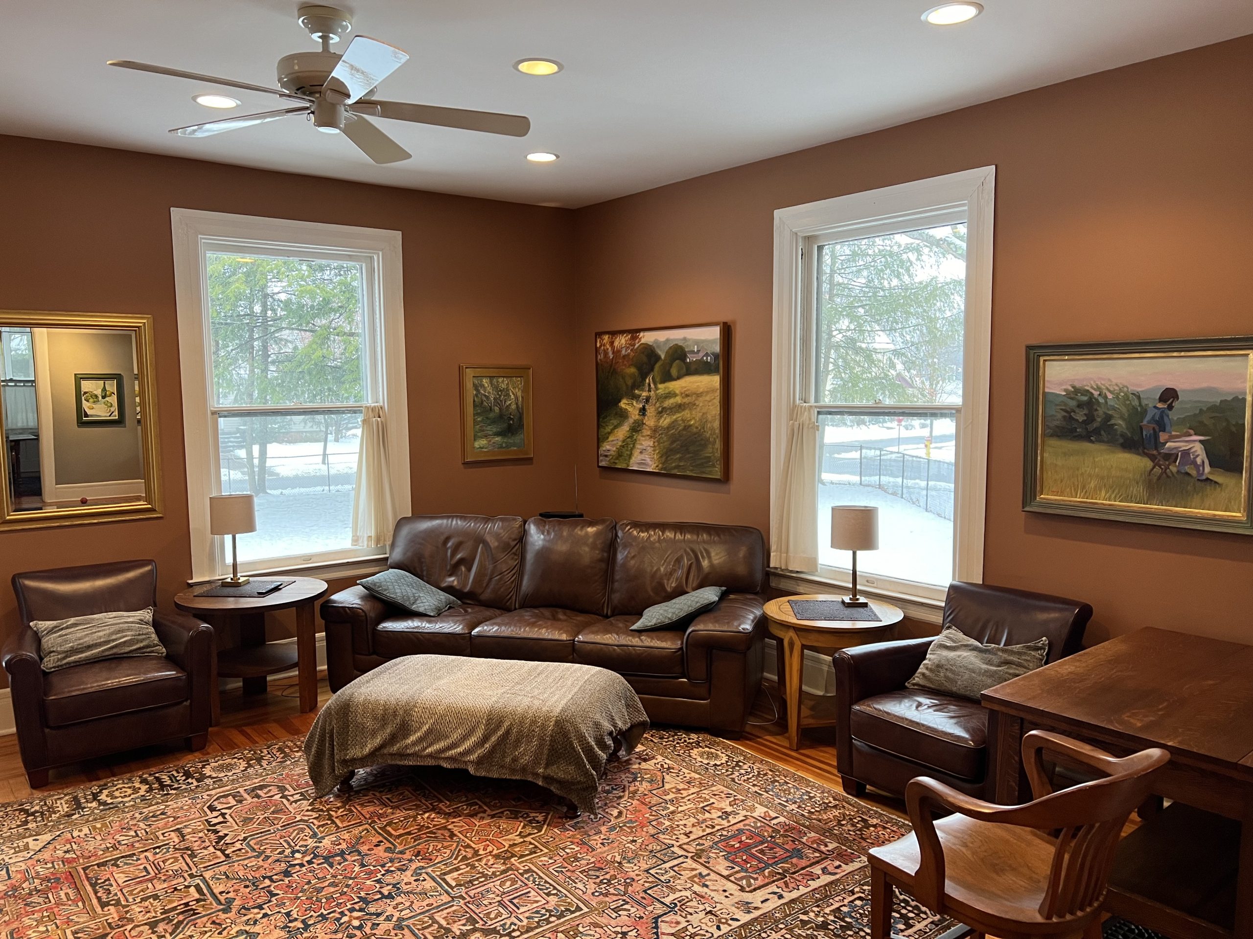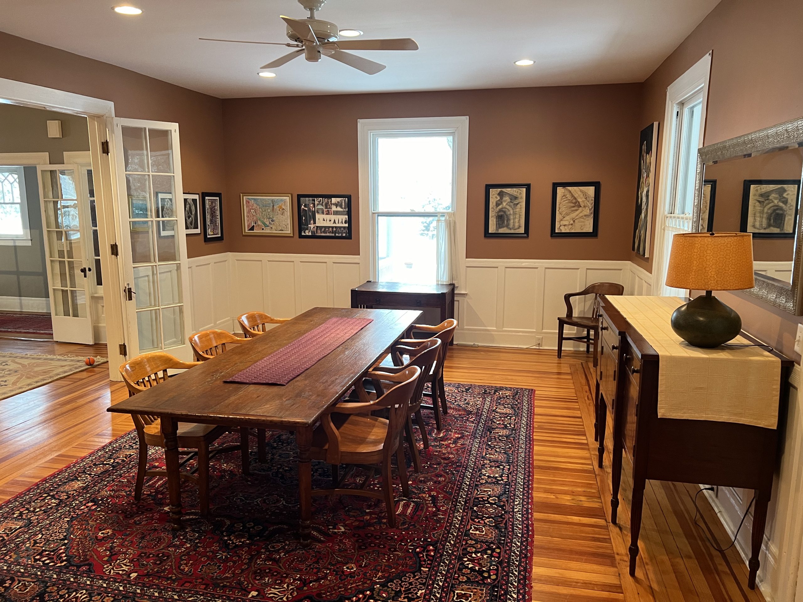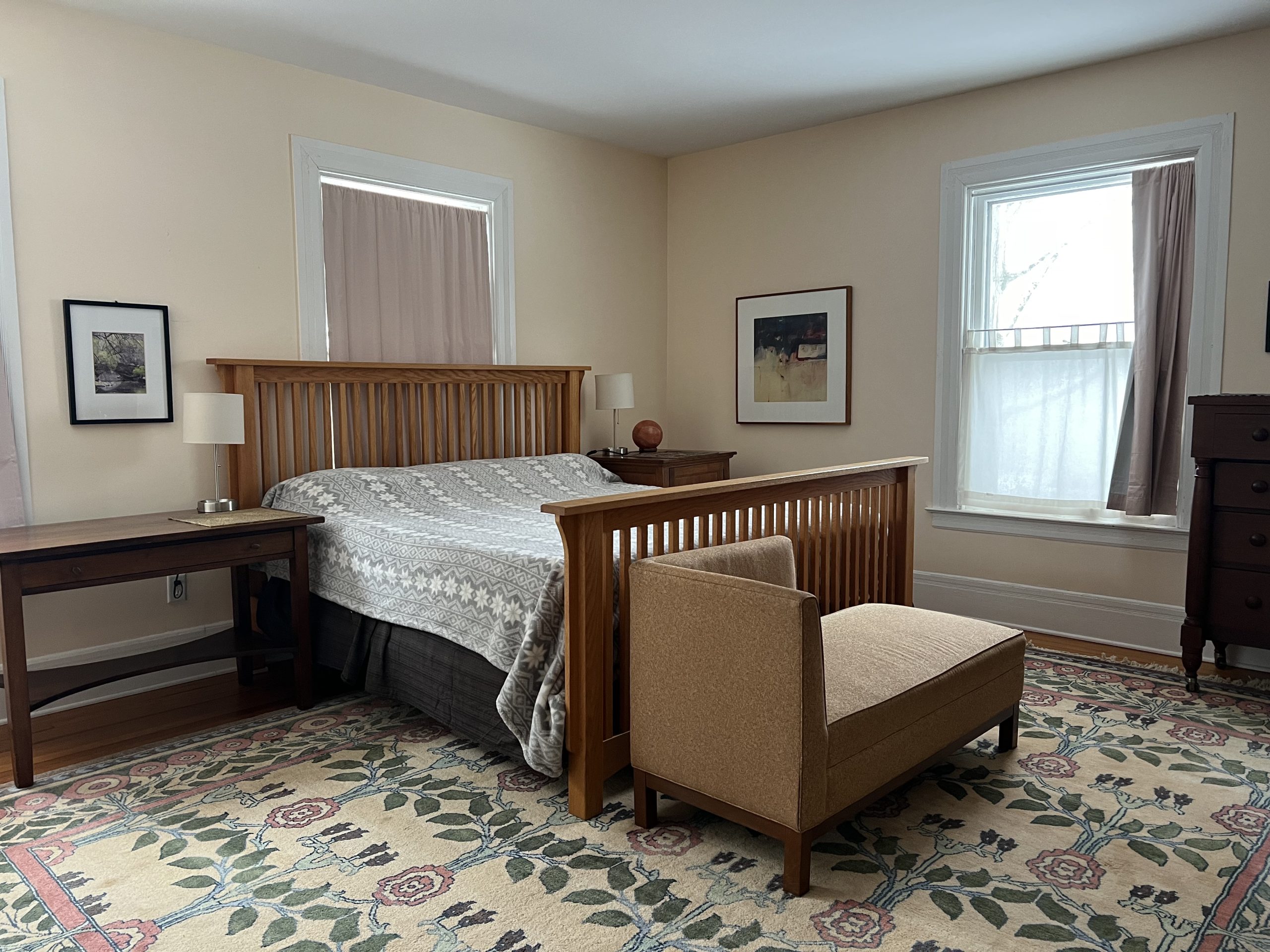 Available for the 2026 Track Season Welcome to Elmwood Mansion – Circa 1905 – This fully-renovated architectural gem boasts 5 bedrooms and 4 full baths with gorgeous open floor plan located less than a block from the Fasig Tipton Sales Pavilion and easy walking distance to the track .The spacious “Saratoga” front porch is great for entertaining or relaxing after at day at the track! . There is also a third level living space that boasts 3 bedrooms, living room and 1 full bath that can be combined with this rental. The Carriage House is a separate rental unit on the property that will be occupied. Can be rented for the season or multi-weekly – please call for options!
