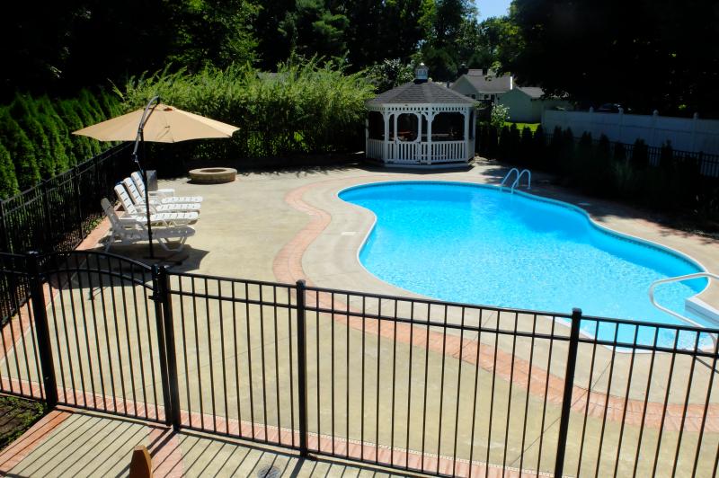 Booked from July 25 to August 2, 2026Â Â Located in a quiet upscale neighborhood near Saratoga Lake, (but only 2 miles to the track) this 4 bedroom and 2 1/2 bath home features a beautiful backyard with a large in ground swimming pool and a screened in gazebo. There is the option to include a full-size bed in the family room, if needed. Indoor features include a large living room with flat screen TV, formal dining room and open kitchen. No pets. Available for multi-weeks.