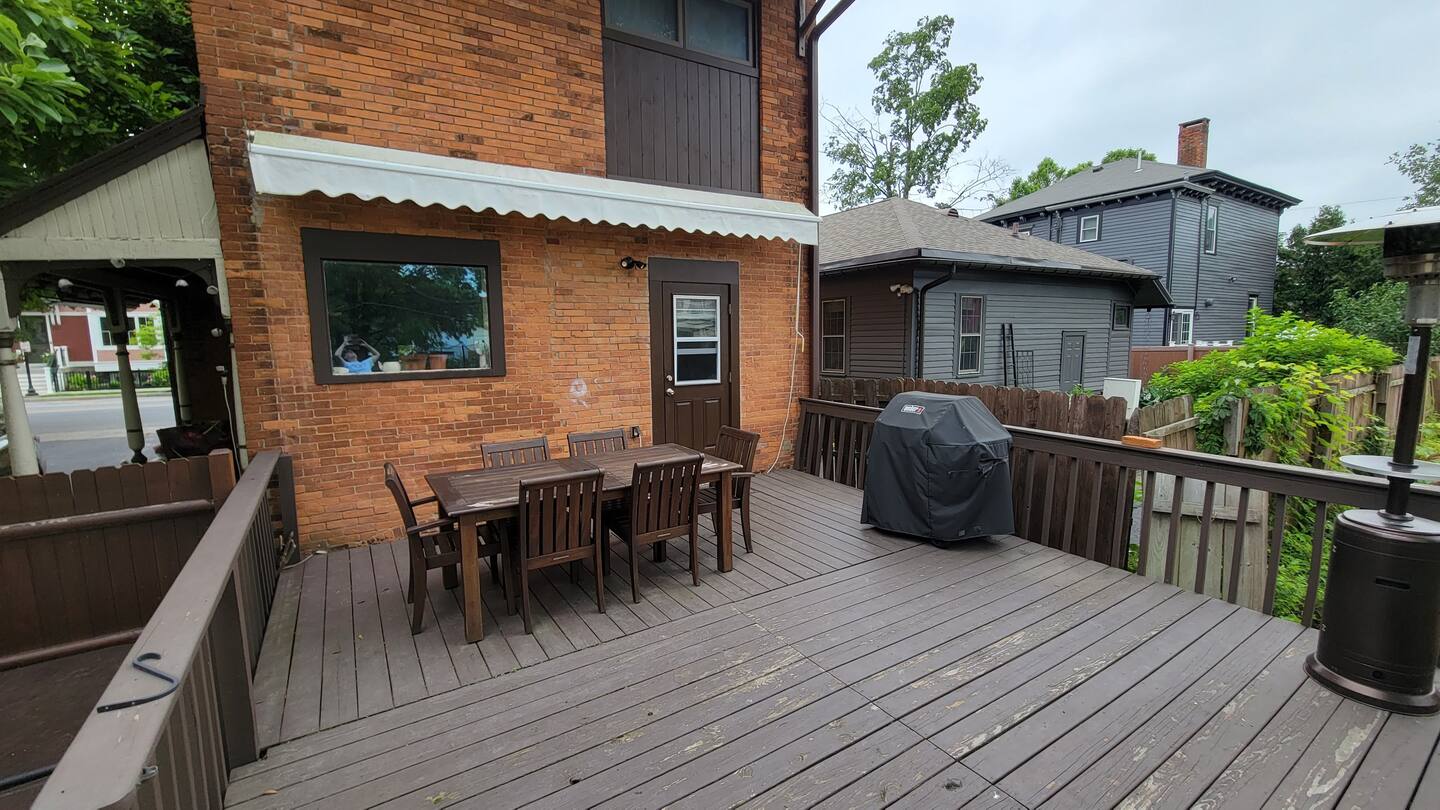 Available for the 2026 Track Season Historic 4 bedroom, 2 full bath house walking distance to everything downtown has to offer. Off street parking for up to 4 cars, fenced yard, hot tub and fire pit. Large rear deck with grill, heat lamp and table for 8. Fenced yard for any furry four legged guests, 6 seater hot tub and fire pit.