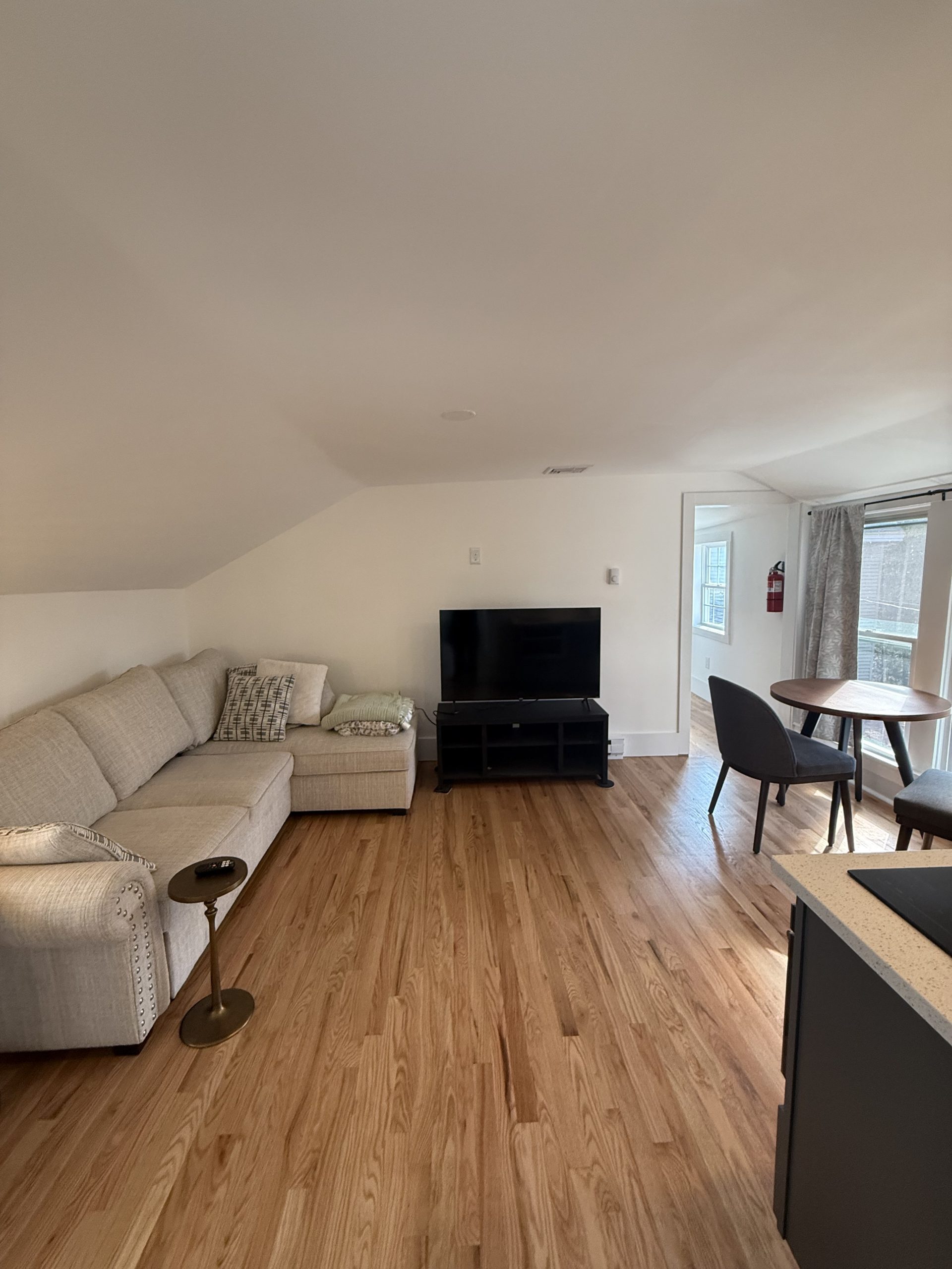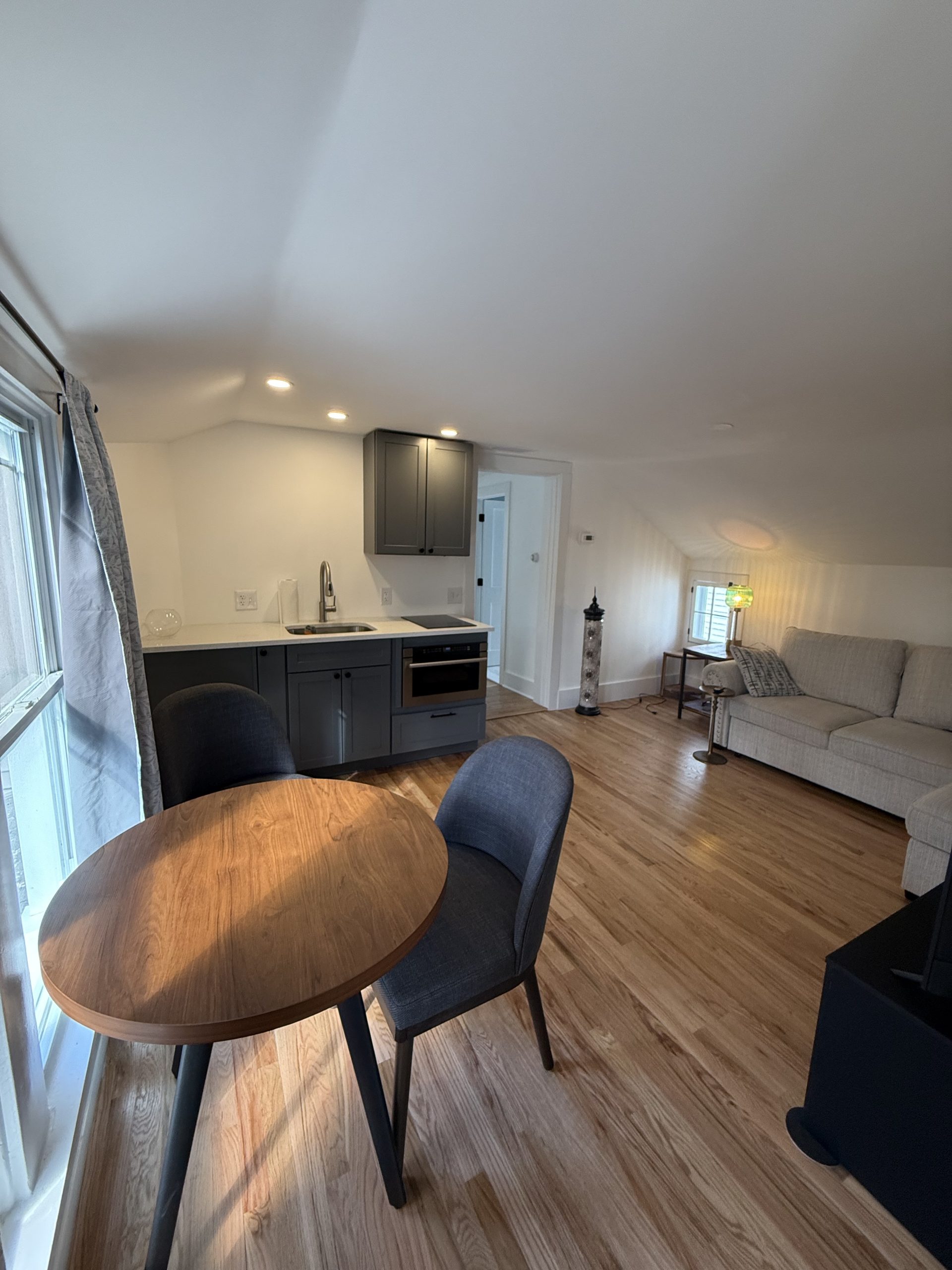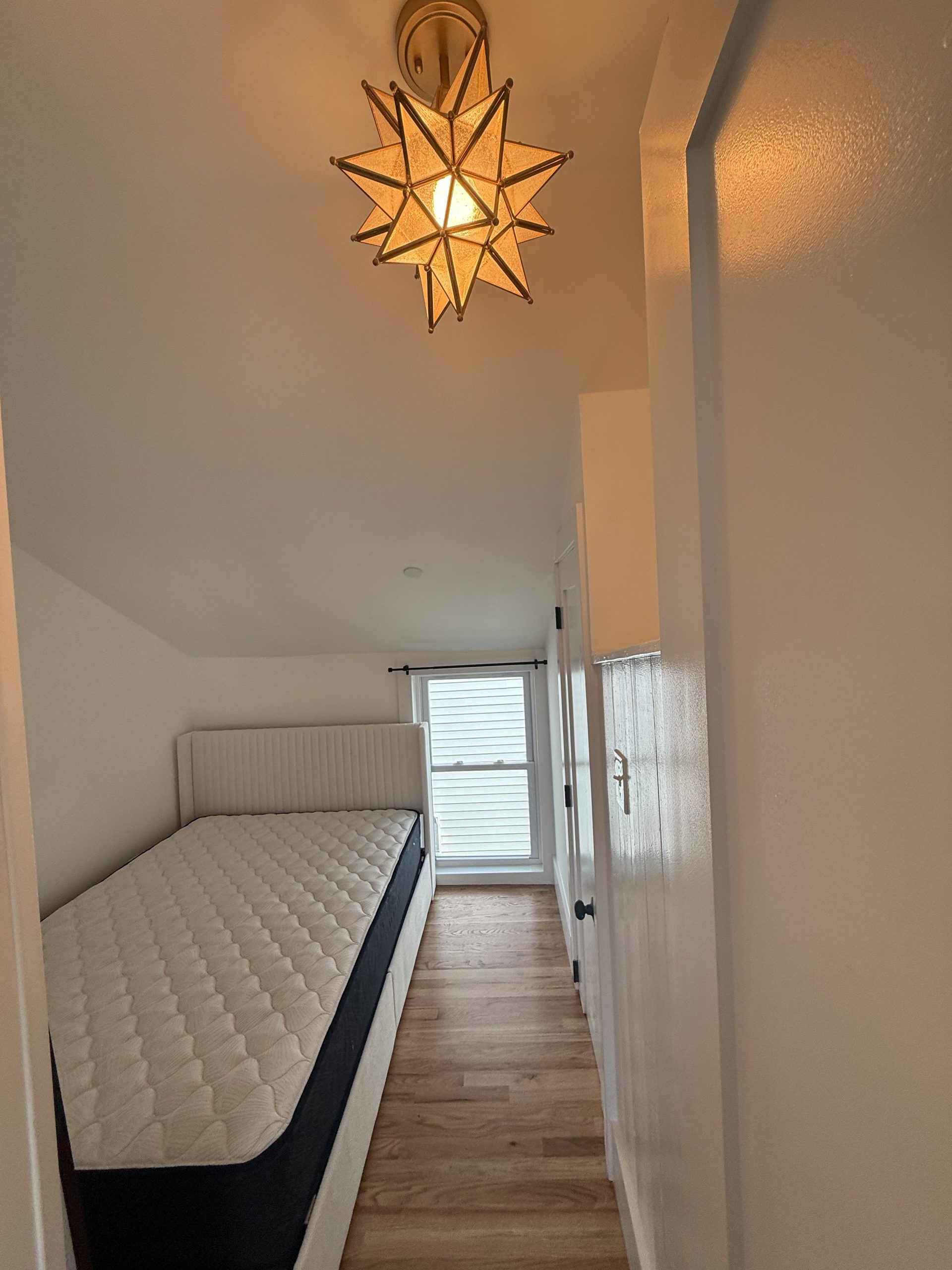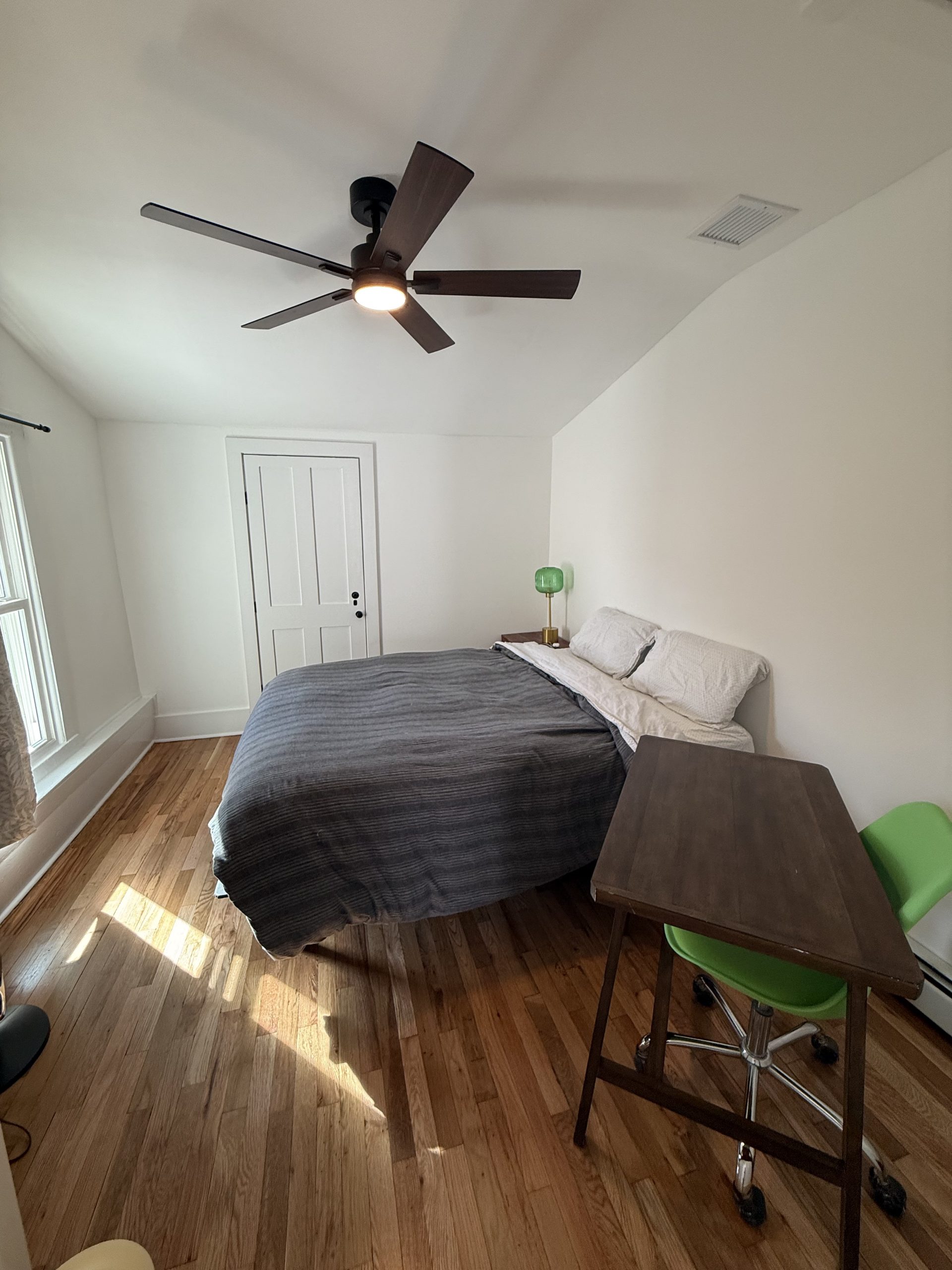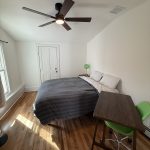 Newly renovated cozy apartment behind the main house. 2 bedrooms, 1 bath rear apartment. Gorgeous hardwood floors and beautifully tiled bathroom. Small kitchenette but with everything you would need. All utilities are included. Off-street parking for 2 cars is available in the driveway (tandem parking).
