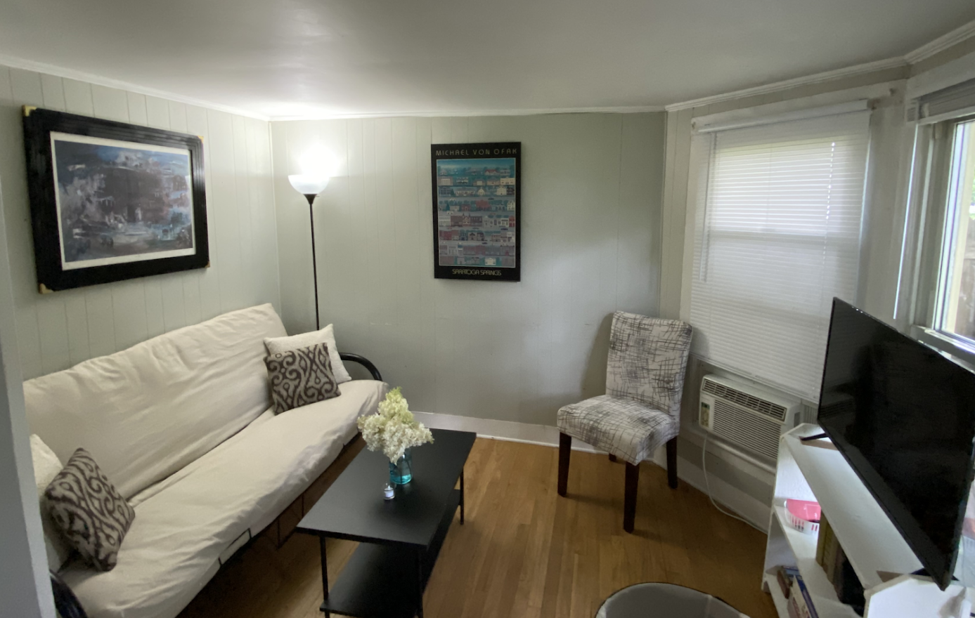 Booked for the 2026 season 3 bedroom and 1 bath cottage on a beautiful street, located close to the track and Broadway. Large front yard and cozy rear patio for enjoying the summer evenings. Small dining table in the kitchen. 1 queen bed, 3 twin beds and a futon that can be unfolded for sleeping. There is not a washer or dryer in this home.