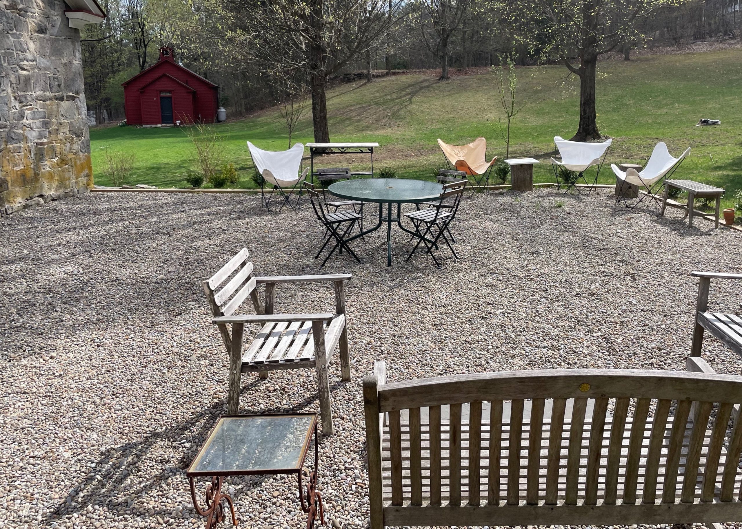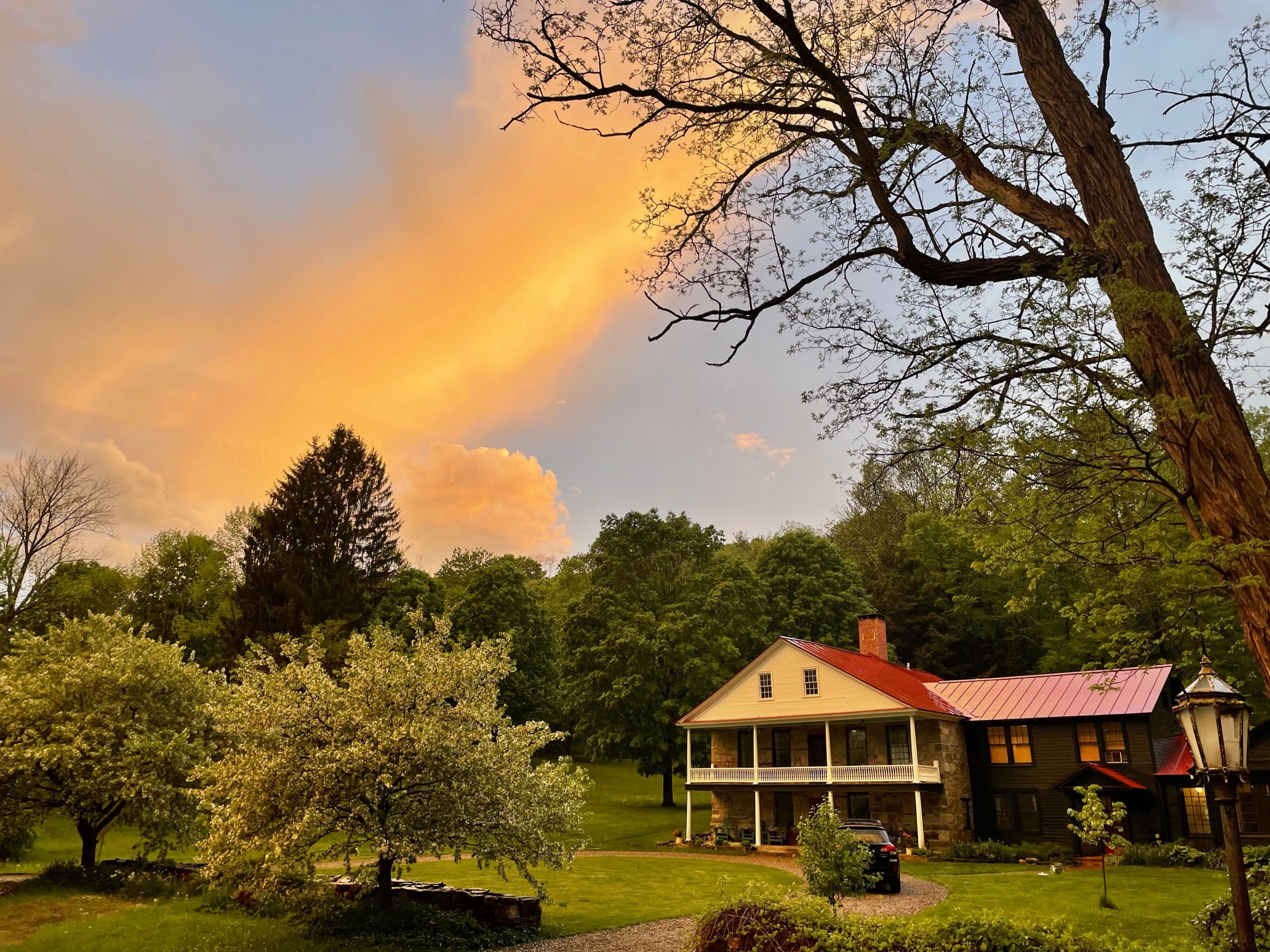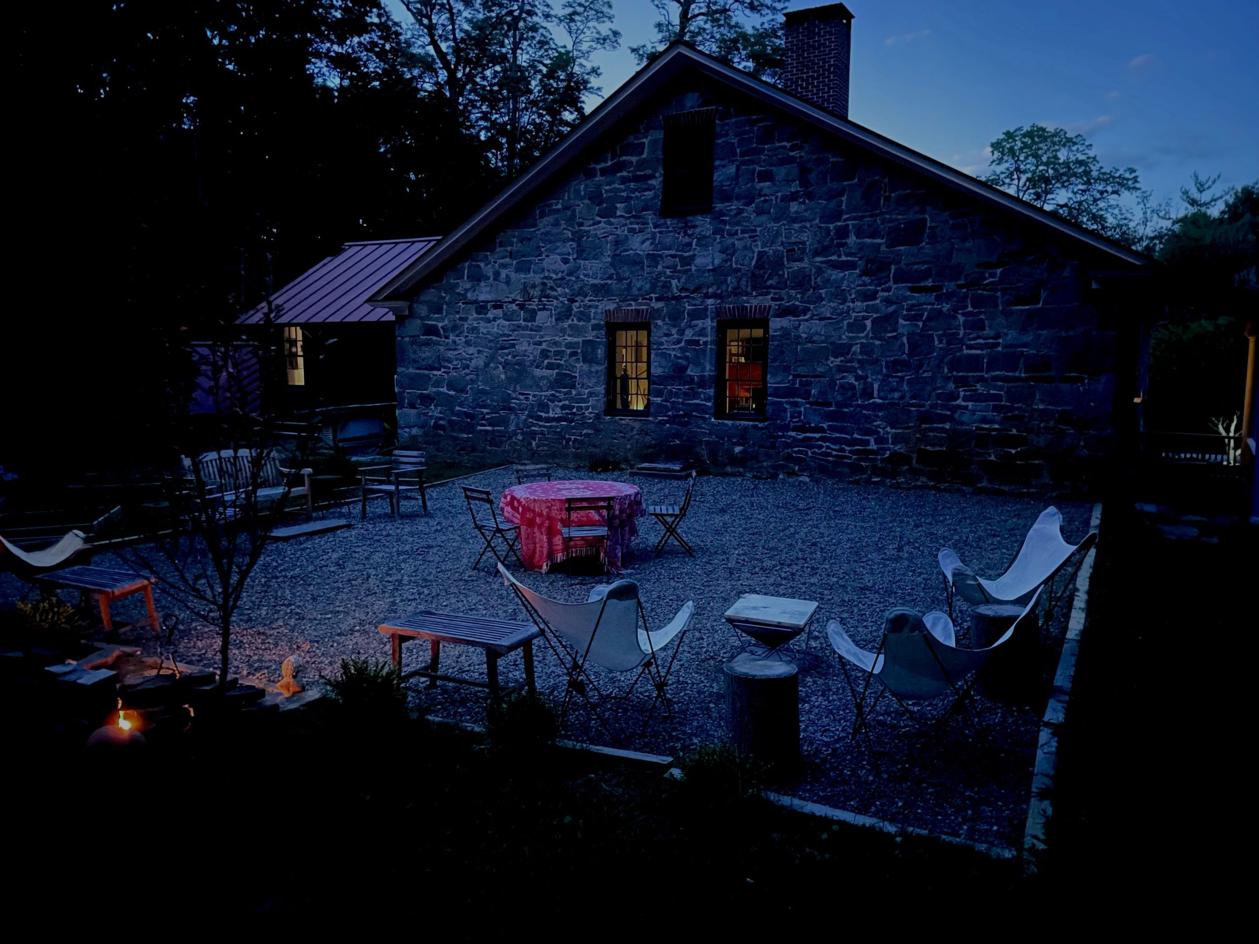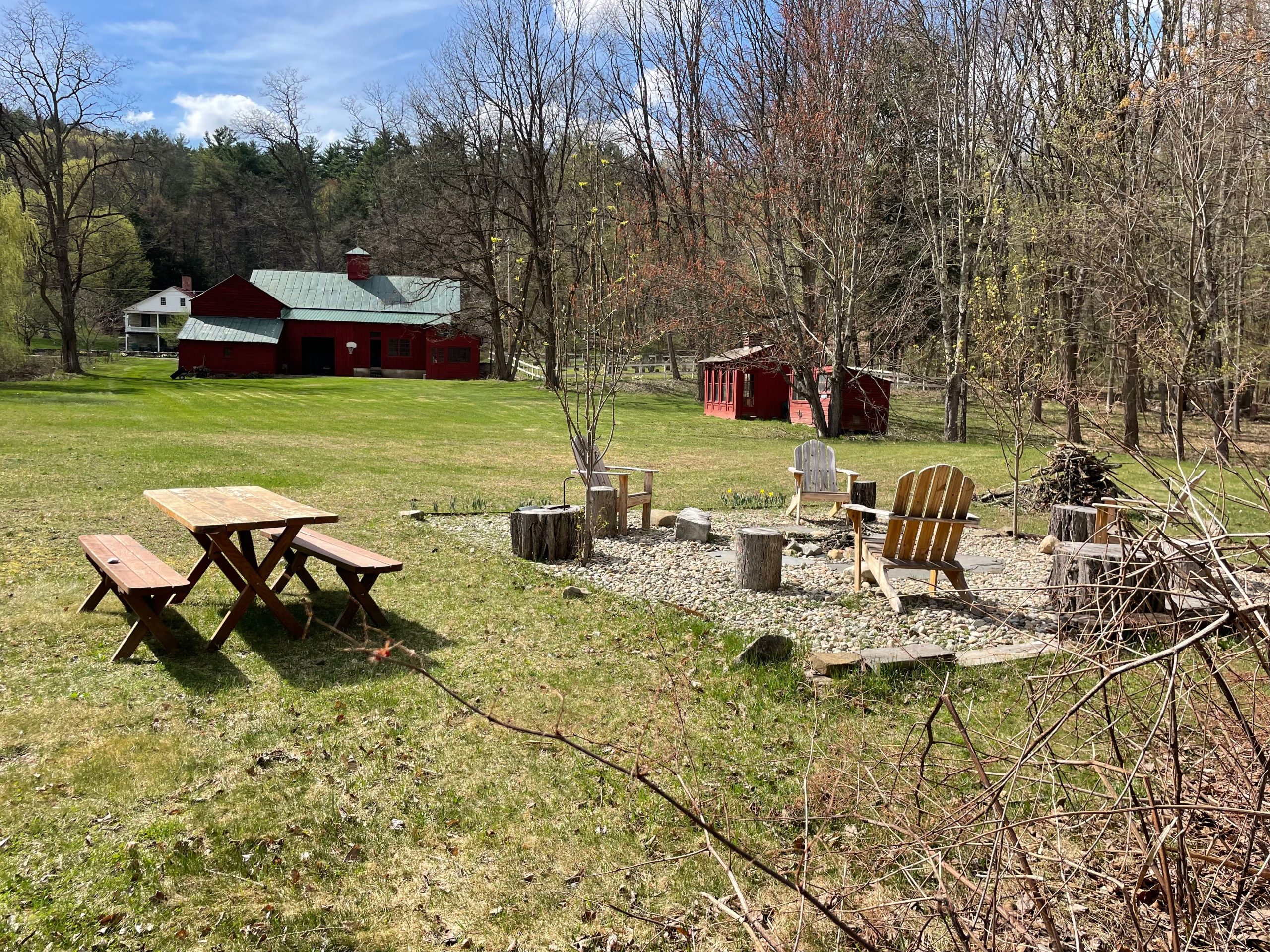 Welcome to “Old Stone Hollow” – beautifully restored 4 bedroom 3 full bath farmhouse that backs up to 60 acres of hiking trails just a 13 minute drive to the track. Gorgeous bright kitchen with lots of windows, hardwood floors, and library. Outside enjoy two patios and a fresh water pond. There is also a cabin for extra room set back on the property as well as a barn with ping pong and two firepits! Bring the whole family to this sprawling historical property! Available weekly.