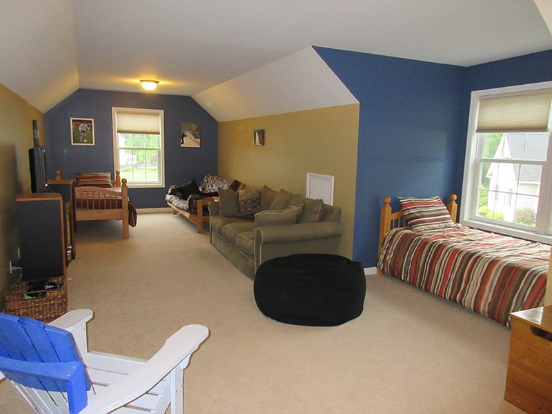BELMONT RATE $1800 a night – 3 night minimum. Located on a quiet cul-de-sac in Olson Farm just a 12 minute drive to the track, this 4 bedroom home has a large first floor master suite and 3 spacious bedrooms upstairs. Features include 50” flat screen TV in the living room, open floor plan, gourmet kitchen with counter and high top seating for 8. First floor master suite, formal dining room, finished basement, private patio perfect for entertaining. Available for weekly or weekend rentals.