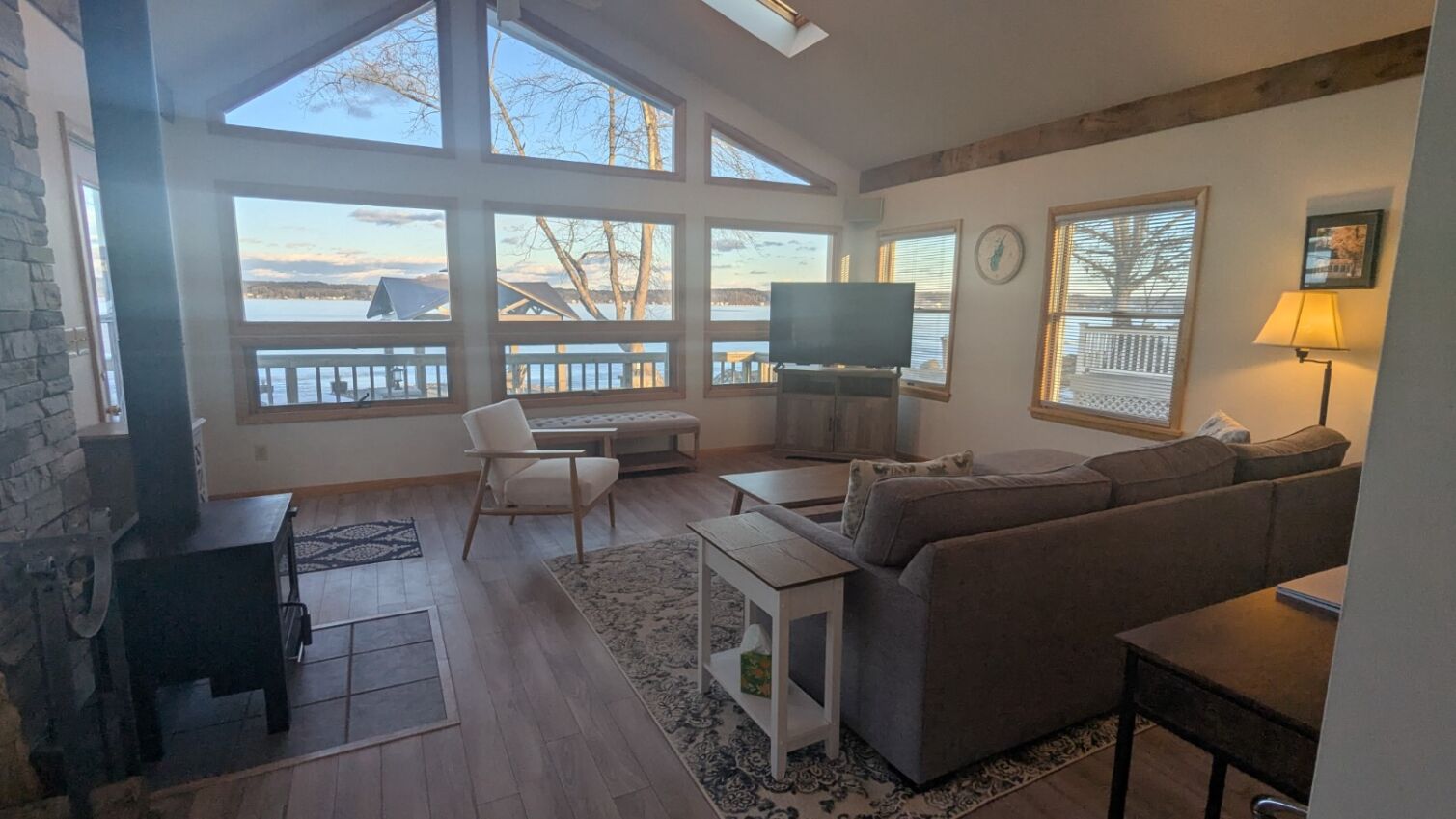 This charming, 2-bedroom, waterfront cottage on the west side of Saratoga Lake is just 15 minutes from the track. Get the best of both worlds in Saratoga! When you’re not at the races, enjoy your lakeside retreat with private, 100-foot dock, deck, patio, and steps right into the water. Watch the sunrise over the lake with floor-to-ceiling windows. Enjoy coffee or cocktails on the deck. Dine in the shade of the pergola on the waterfront. On cool nights, enjoy the firepit by the lake or the wood-burning stove in the living room. Fully-equipped kitchen & gas grill, with several restaurants within a short drive, and a quick drive to downtown Saratoga Springs. Weekly boat rentals available nearby. Sleeps 4. Will accept 1 dog with $100 non-refundable fee. No cats. Minimum 1 week rental.
