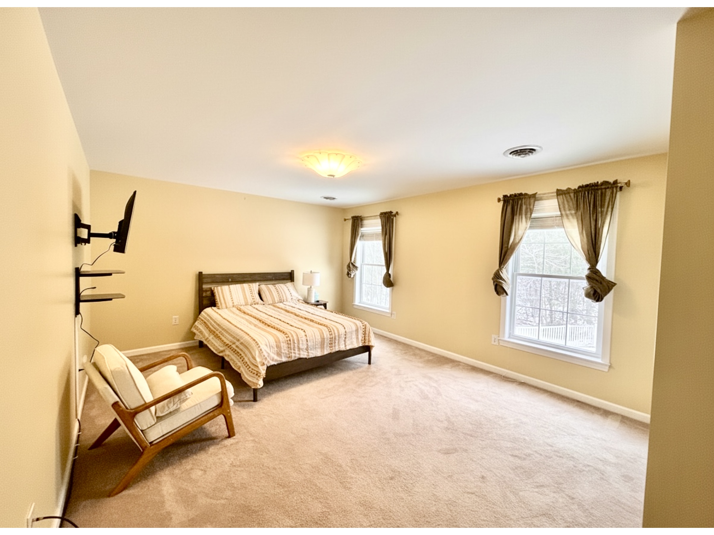 Available for the 2026 Track Season Beautiful 3 bedroom, 3 bathroom home in the charming bedroom community of Wilton. Only a 15 minute drive to Saratoga, the race track, restaurants, shopping and everything Saratoga has to offer! Brand new furniture and hardwood floors throughout this home and a fully equipped kitchen and dining room. 3 large bedrooms and the 3rd one has a gorgeous and modern couch that pulls out into a King sized bed – this room could also be used as a study or play room. If you are looking for a quiet place, away from the bustle, yet so close, this is the spot for you. Huge fenced yard with outside dining patio and room to roam. This home is pet friendly for your fur babies.