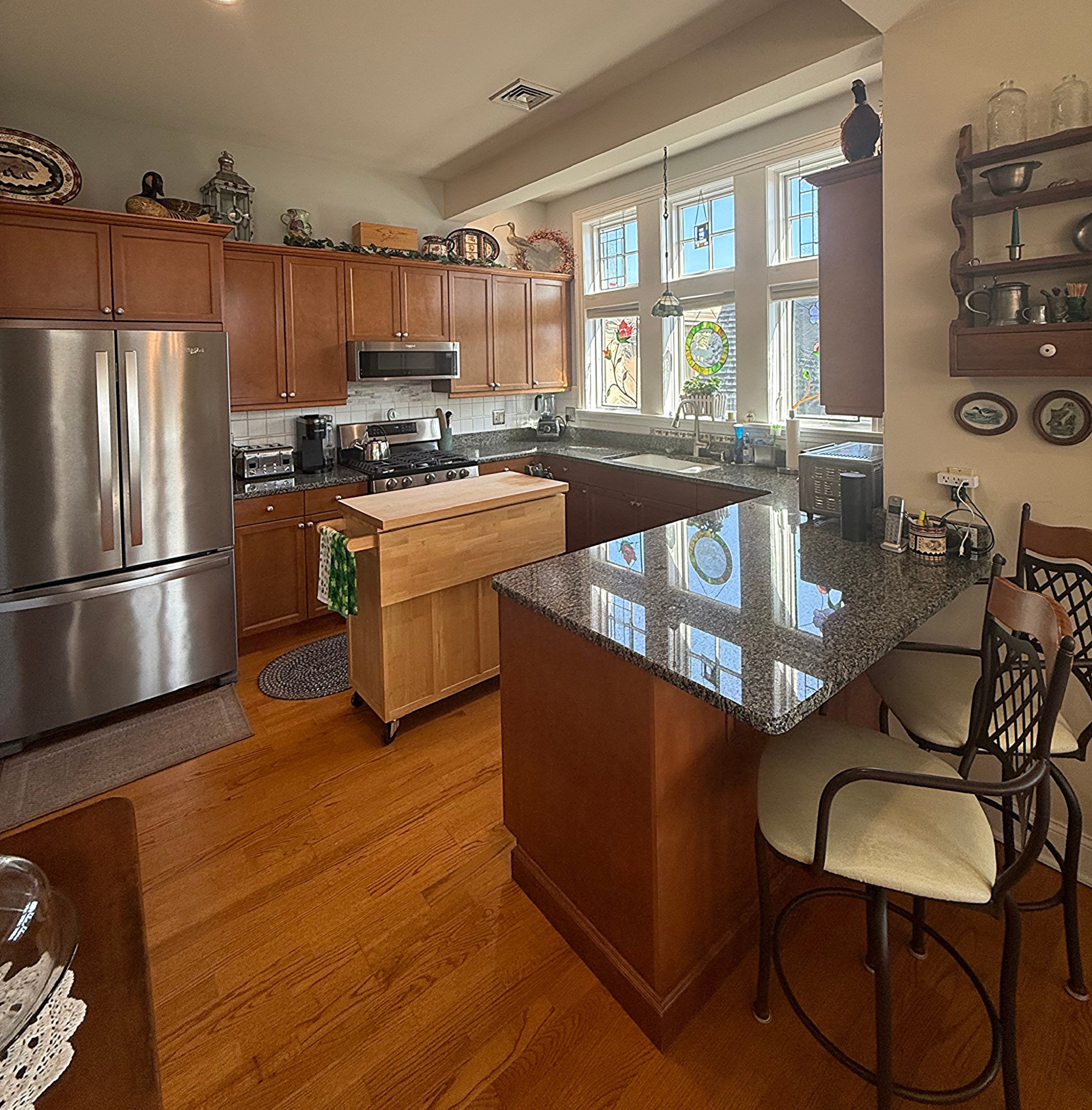 2 bedrooms and 2 bathroom townhome with spacious patio and lots of windows. Upgrades throughout includes high ceilings, gas fireplace, under counter lighting, Nest thermostat, stainless refrigerator, in unit washer and dryer, granite counter-tops, hardwood floors, oversize walk in closet and generous living spaces. Lovely patio with electric grill. Easy access to beautiful Spring Run Trail. Close to everything. Perfect base for all activities. Located 2 miles to the track and to Broadway. No smoking on the grounds and no pets per the HOA.